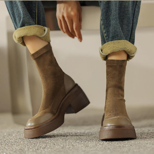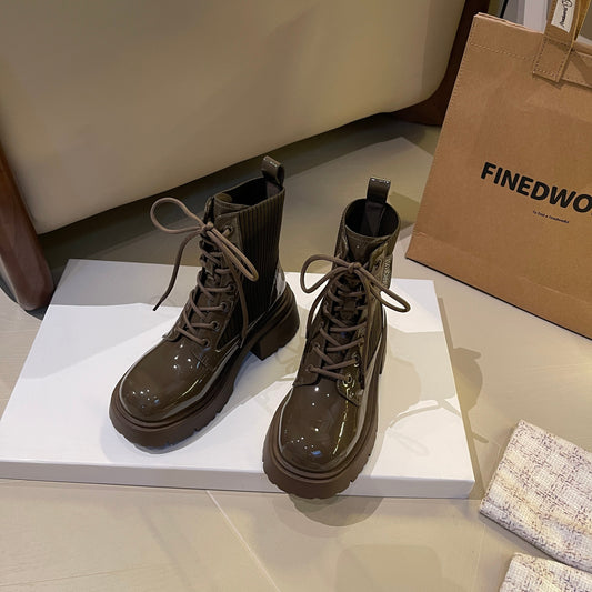 Mylu | LUSTER in Mocha Mousse | Women's Leather Fabric Blend Combat Boots | Round Toe Laced Platform Boots