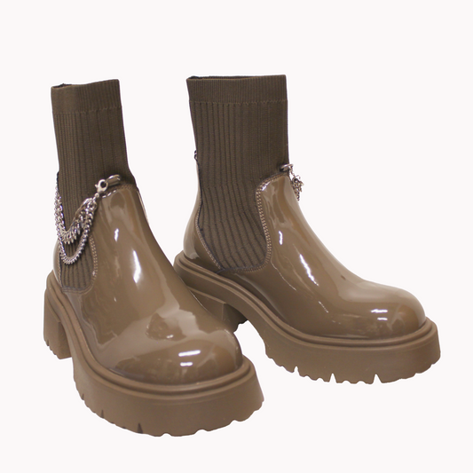Mylu | BRIO in Mocha Mousse | Chelsea Boots | Metal Chain Decor Ankle Boots | Chunky Sole Chelsea Boots
