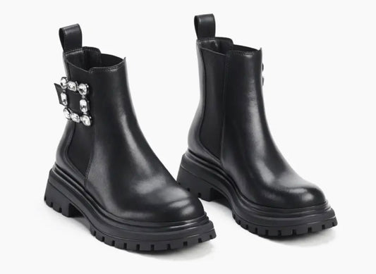 Mylu | STELLA | Genuine Leather Chelsea Boots | Square Crystal Decor Ankle Boots | Chunky Sole Chelsea Boots